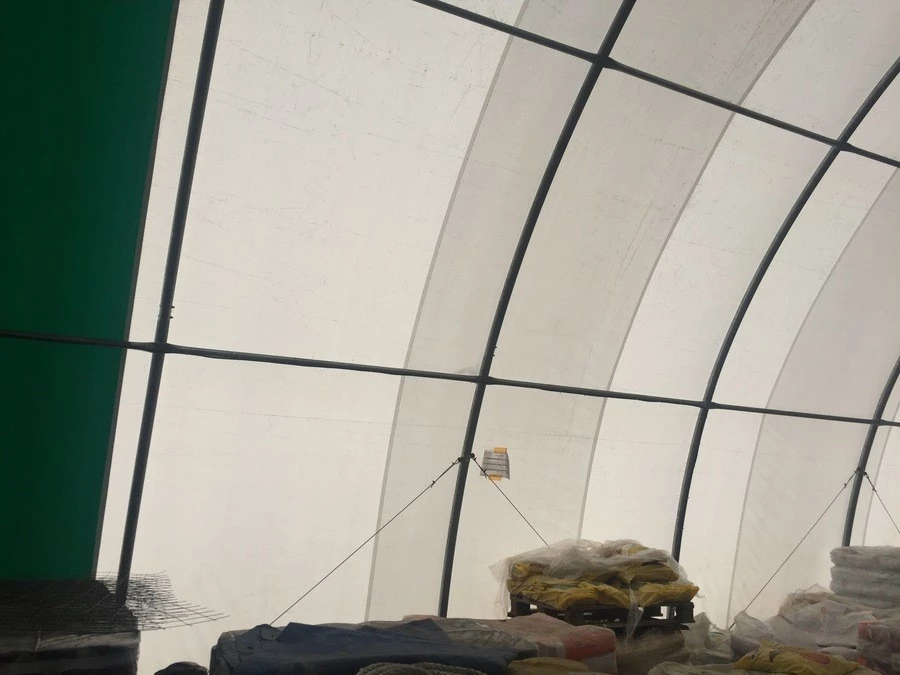 Hala jest nowa i jest zapakowana w metalową skrzynie, znajdują się w niej wszystkie elementy potrzebne do złożenia hali oraz plandeka (Plandeka wykonana z tworzywa PE- ognioodporna)