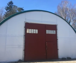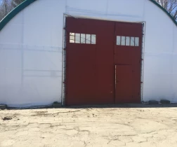W zestawie drzwi są również z plandeki. Wymiary bramy wjazdowej 3,5m x 3,5m.