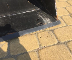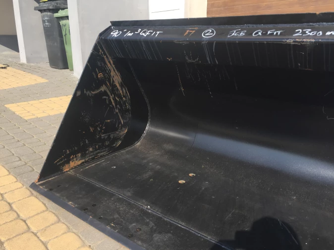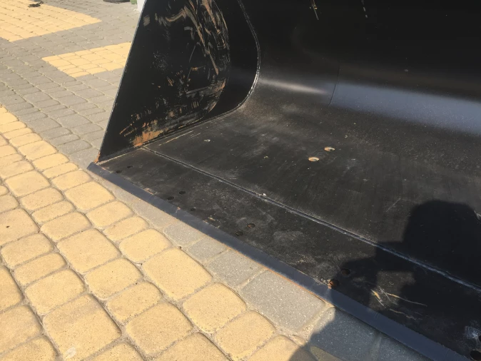 Posiada otwory umożliwiające montaż wymiennego lemiesza aby zapobiegać zużyciu lub aby wmontować zęby ułatwiające nabieranie materiału.