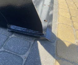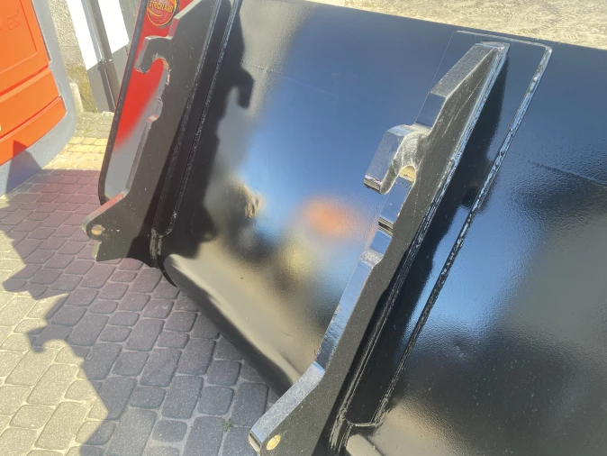 Posiada otwory umożliwiające montaż wymiennego lemiesza aby zapobiegać zużyciu lub aby wmontować zęby ułatwiające nabieranie materiału.